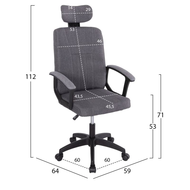Office chair with PU leather upholstery in GRAY color. Dimensions: 63x70x114H cm.