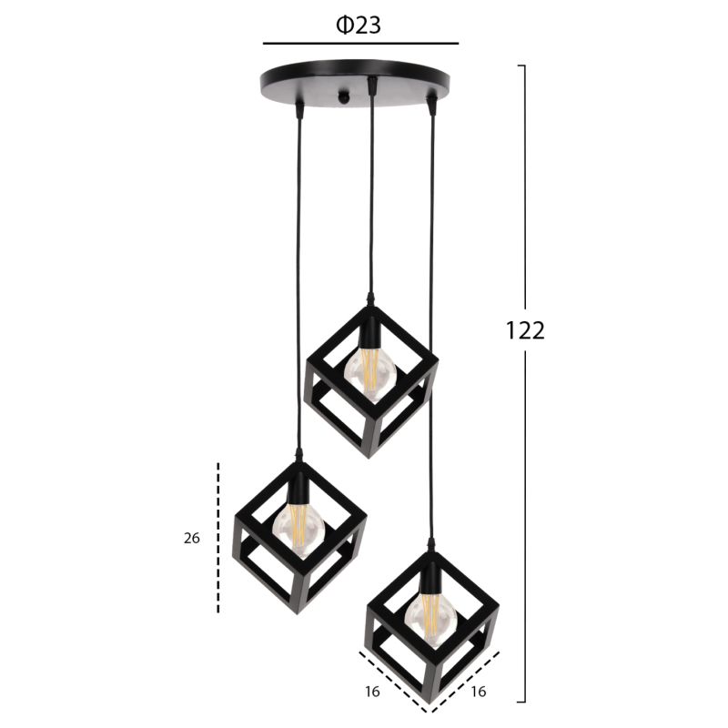 Оставете светлината да се разпространи в пространството с оригинална и елегантна висулка за таван 3 запалки, завършвайки вашата декорация. 3-те кубчета на 3 различни височини са олицетворение на модерния дизайн.