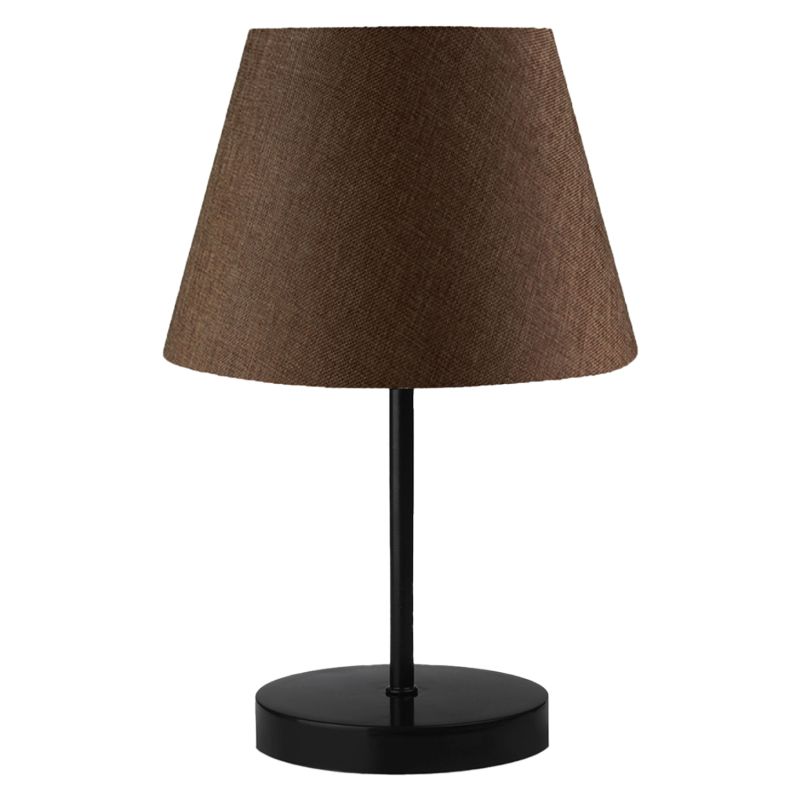 Това е изчистена декоративна настолна лампа. "Шапката" на осветителното тяло е с форма на отворена камбана (трапец) в кафяв цвят, а носещата основа и колоната са черни. Проста и елегантна настолна лампа, която разсейва светлината сладко и създава атмосферата, която винаги сте си представяли за вашето пространство, така че да можете да създадете свой собствен кът за почивка или дори декорация. Защото светлината означава нещо повече от лампа. Това означава декорация, атмосфера, изкуство, вкус и разбира се наука.