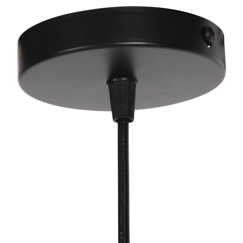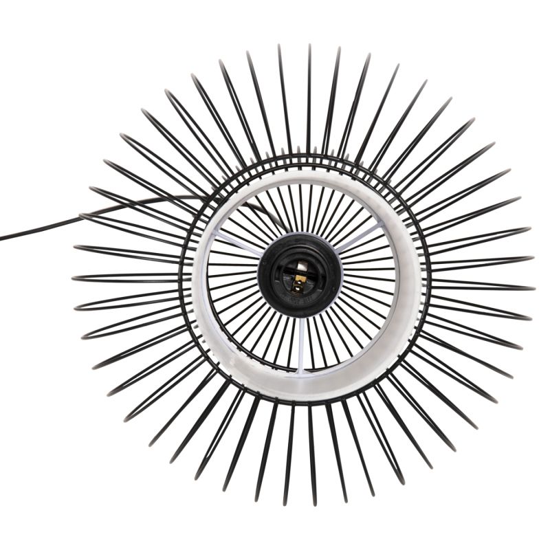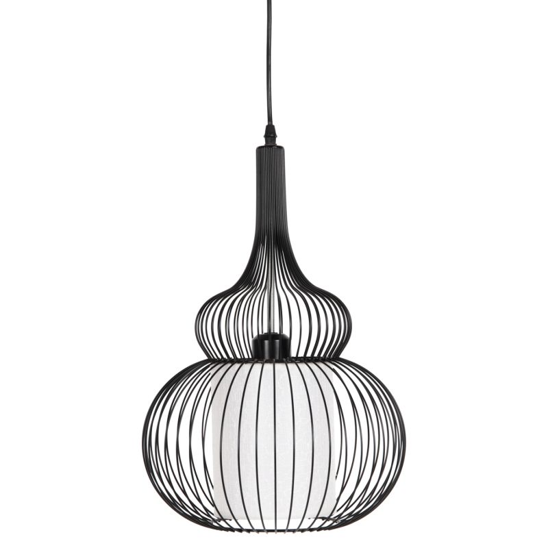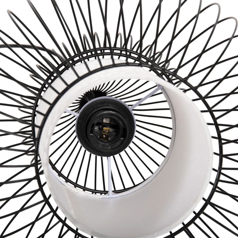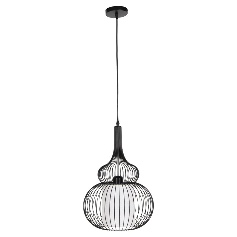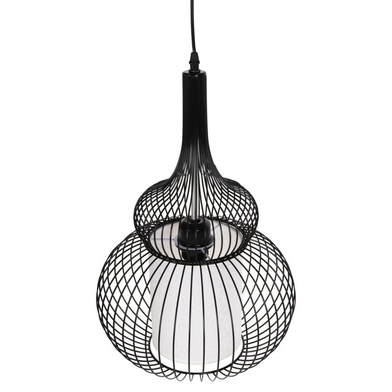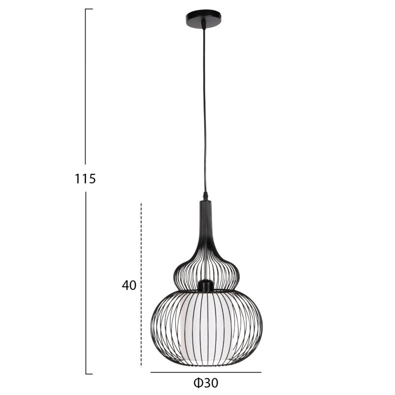 HΜ4185--- Запознайте се с тази нова, оригинална и елегантна висяща лампа за таван в нашата гама и завършете своята декорация. Има ЧЕРНА метална капачка в мрежест дизайн, докато лампата е вътре в бял PVC плат, който подчертава яркостта, но в същото време не пречи на светлината да достигне до всеки ъгъл и е олицетворение на модерния дизайн при плафониери.
