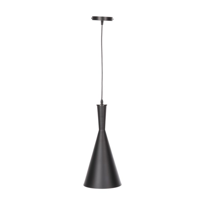 Открийте нашата нова висяща таванна лампа и завършете декорацията си. Това е лампа с ЧЕРНА продълговата АЛУМИНИЕВА капачка със златиста повърхност от вътрешната страна на лампата.