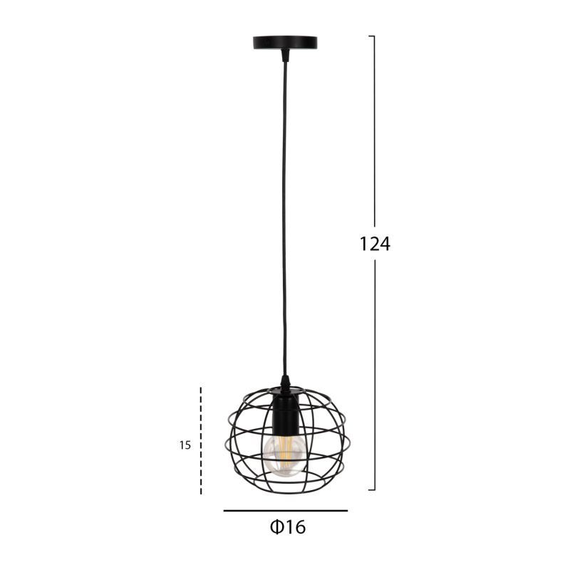 Оставете светлината да се разпространи в пространството с оригинален и елегантен пендел, завършващ вашата декорация. Сферичната форма с ЧЕРНИ метални пръти е олицетворение на модерния дизайн.