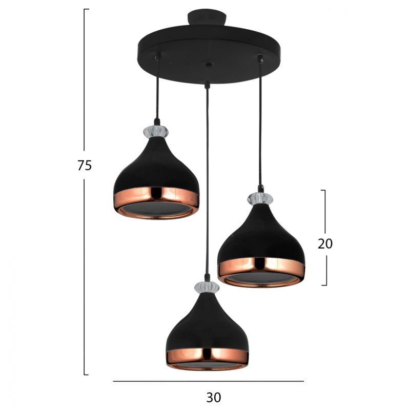 ΦΩΤΙΣΤΙΚΟ ΟΡΟΦΗΣ 3ΦΩΤΟ ΜΕΤΑΛΛΙΚΟ ΜΑΥΡΟ HM7524.01 30x30x75 ек.