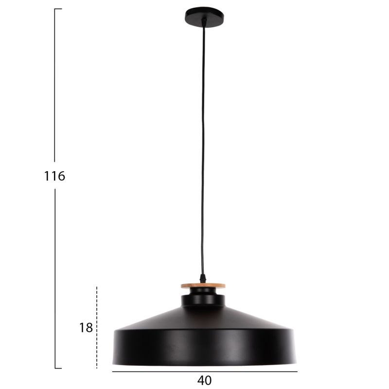 Открийте нашата нова висяща таванна лампа и завършете декорацията си. Това е лампа с ЧЕРНА плитка метална капачка във формата на камбана с дървени детайли в горната част на лампата. Естетически, той е завършен с черен висящ кабел и бяла таванна основа и е най-новата тенденция при плафониери.