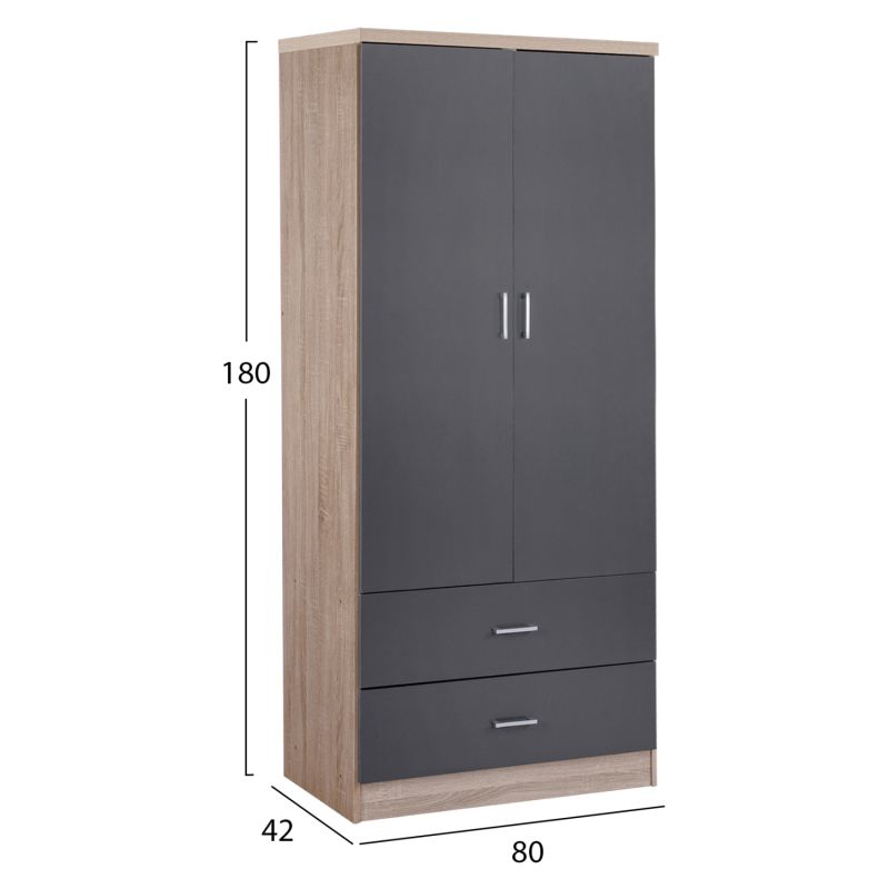 HM338.04--Двукрилен гардероб с 2 чекмеджета меламин в цвят сонама и сив.