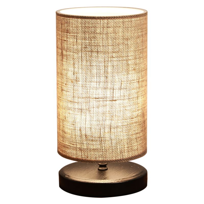 Декоративна настолна лампа с дървена кръгла основа в черен цвят и цилиндричен абажур в пясъчен цвят. Светлината на лампата се разпръсква сладко в пространството и създава топла атмосфера. Тези лампи не са идеални за четене и това винаги трябва да се има предвид, когато обмисляте закупуването на такава. Те са чисто декоративни и съчетаването им с околното пространство трябва да е хармонично. Тази лампа е семпла, елегантна и удобна като размери, предоставяща безброй възможности за "завързване" с останалата част от вашата декорация. Това е едно малко произведение на изкуството.
