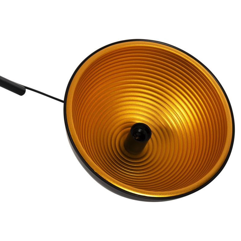 Представяме ви нашия нов пендел, който ще промени и обнови облика на вашето пространство. Това е лампа с ЧЕРНА АЛУМИНИЕВА капачка във формата на камбана със златиста повърхност от вътрешната страна на лампата.