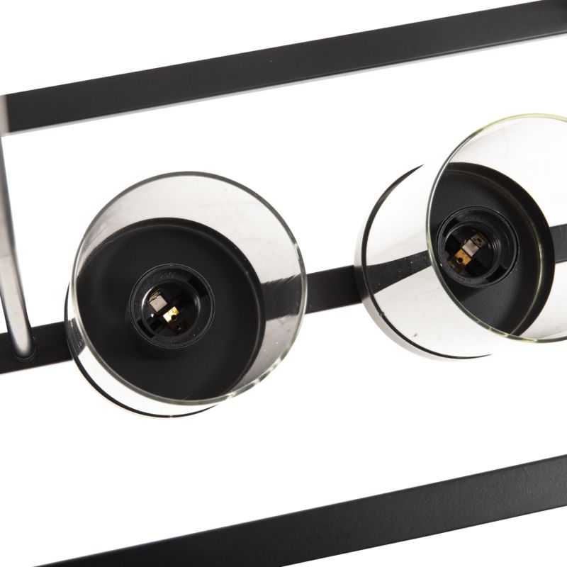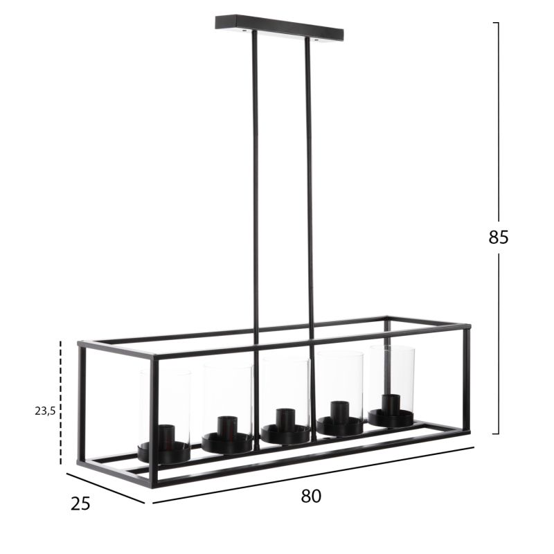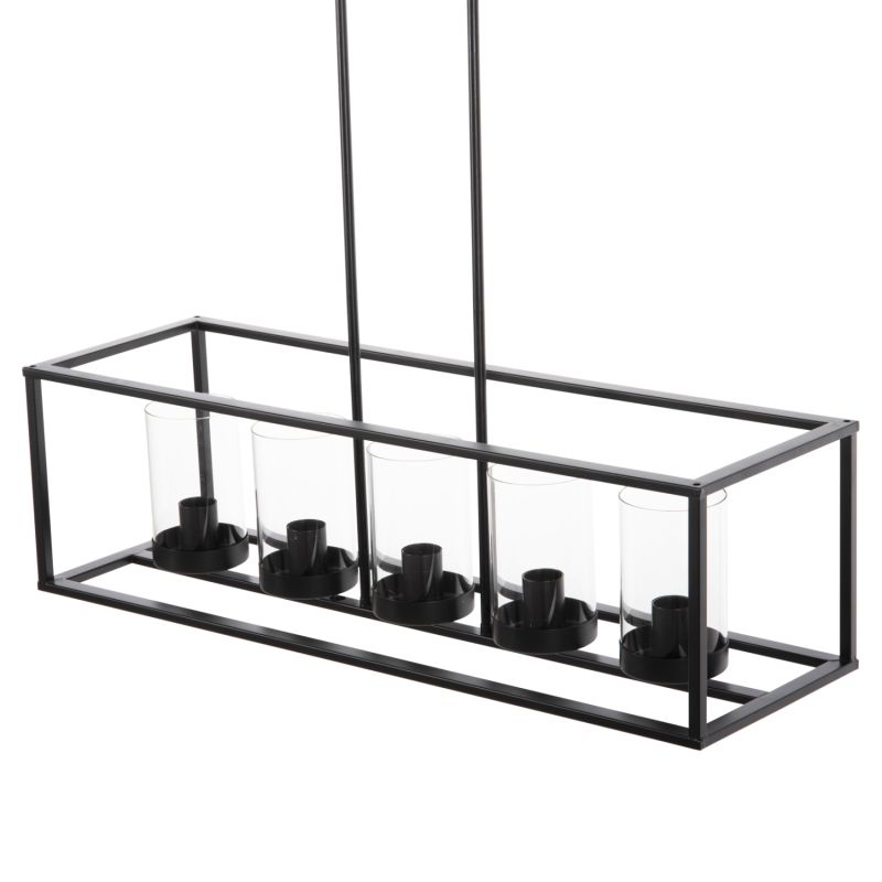HM4082 е едно от новите попълнения в нашата гама и е впечатляващо. Неговите 5 светлини в един ред са поместени в стъклени витрини, които са монтирани върху ЧЕРНА правоъгълна метална конструкция като витрина, която е окачена на тавана с 2 метални пръта. Това е една впечатляваща лампа, от която ще се възхищават всички!