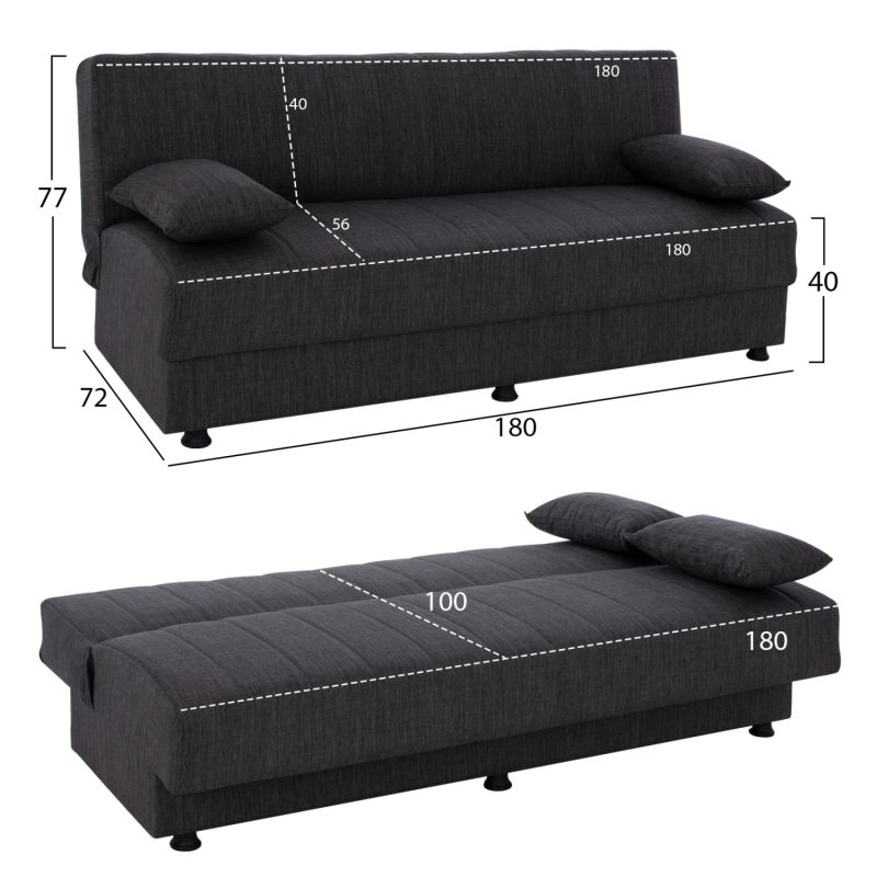 Диван в сива дамаска ставащ на легло с механизъм за падане на облегалката. Размери: 180x72x77H см.