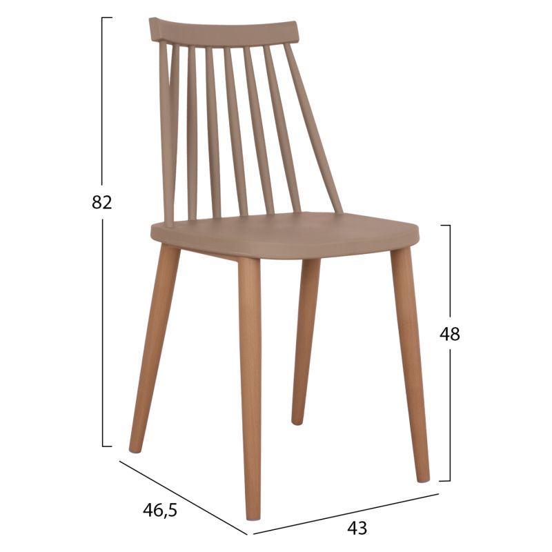 4 полипропиленови стола с метални крака. Цвят капучино. Размери: 43x45.5x82H см.