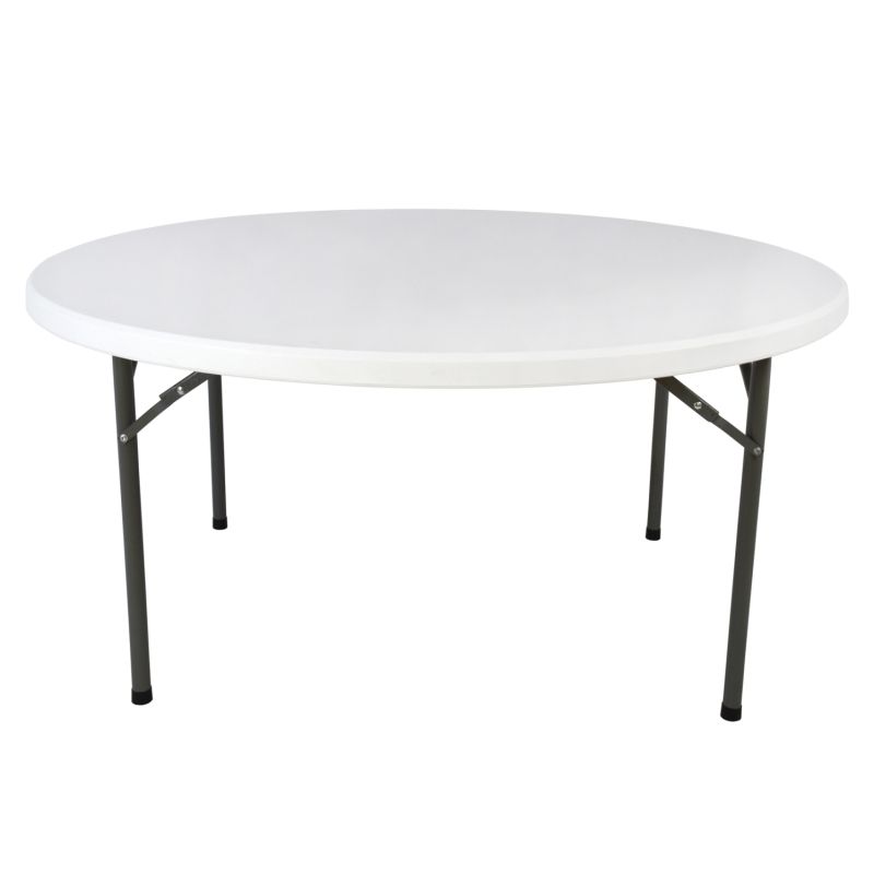 Кетъринг маса сгъваема кръгла от здрава първична пластмаса и метална рамка за по-лесно и безопасно транспортиране.