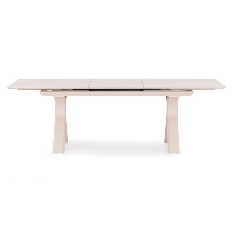 Представяме ви впечатляваща правоъгълна маса от серията Андромеда с алуминиева рамка и плот от синтерованият камък.