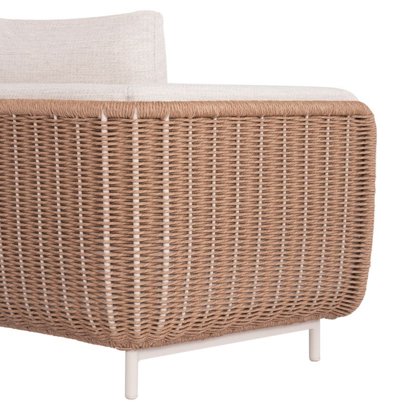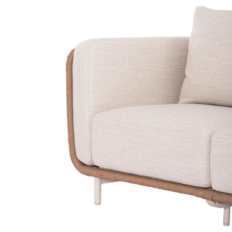 Този комплект за открито от 4 части е изработен от алуминий и се състои от: от 2 удобни фотьойла, 3-местен диван и масичка за кафе на 2 нива с плотове от синтерован камък.