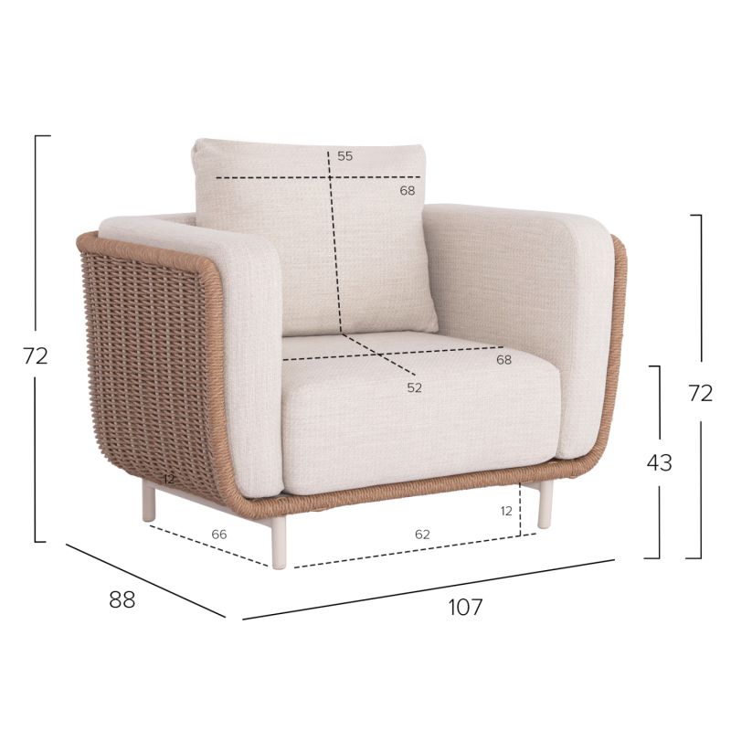 Общи размери на фотьойл: 107x88x69-72 см