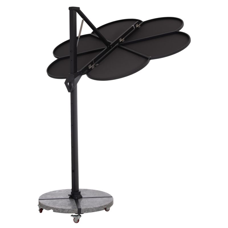 Градинският чадър Флауър във формата на цвете съчетава модерен дизайн, здрава конструкция и абсолютна функционалност. Изработен от прахово боядисан алуминий, той осигурява устойчивост на корозия и атмосферни условия, което го прави идеален избор за градина, басейн, хотел или кафене.