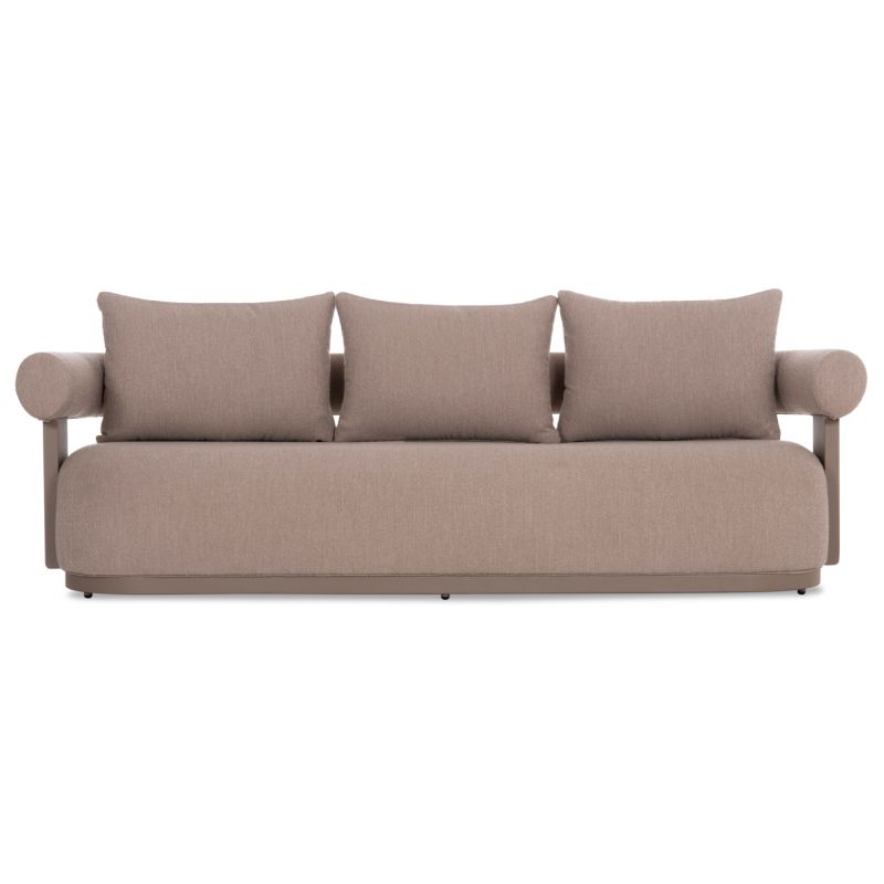 Триместният диван е изработен от алуминий в тъмносив цвят, както и полиестерната материя, покриваща подлакътниците, както и възглавниците на облегалката и седалката. Поставете първокласен диван във вашето външно пространство, който ще промени „пейзажа“!
