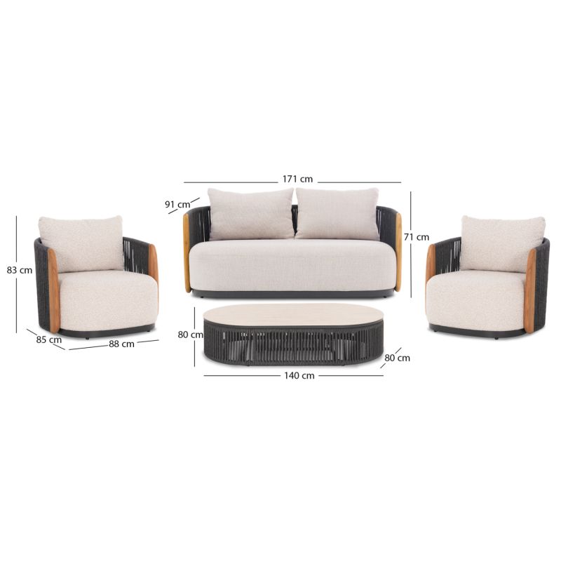 -Калъфи за възглавници: водоотблъскваща (полиестерна) материя OLEFIN, специално изработена за употреба на открито (с ципове за лесно сваляне).